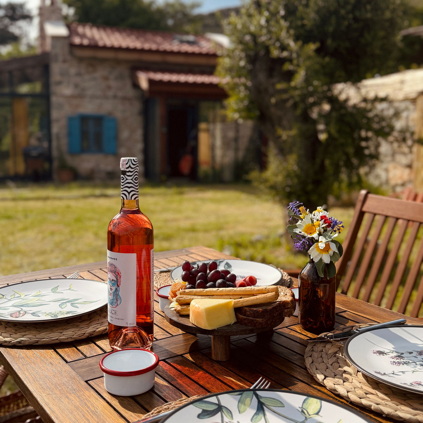 In this small stone house, carefully restored with its original character fully preserved and located in a unique spot on the Datça Peninsula, you have everything you need to enjoy the magnificent view, watch the sky, relax on the terrace, ground yourself in a garden reminiscent of a botanical park, and slow down.